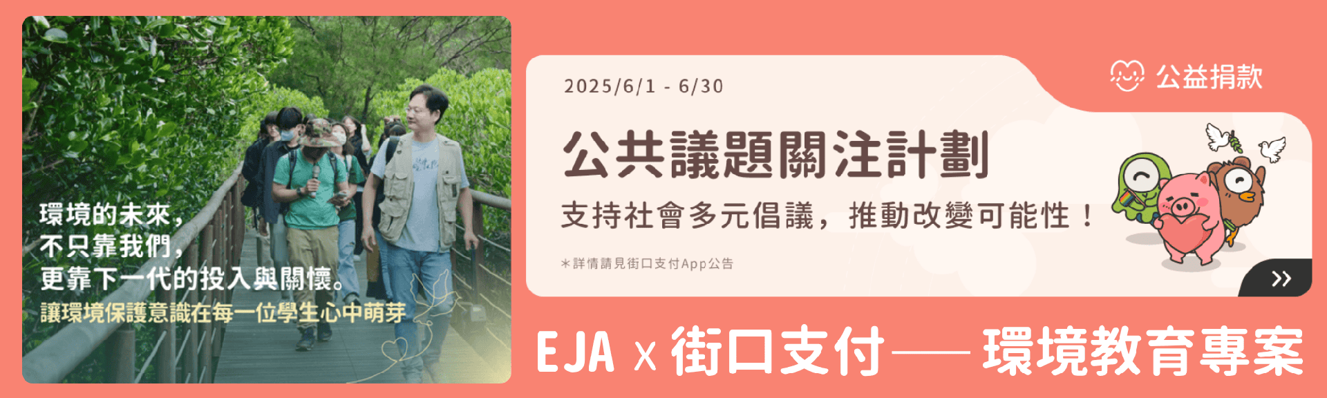 EJA加入街口支付平台,讓支持EJA變得更加簡單便利!現在,您可以透過街口支付等多元方式捐款,一起推動環境教育的深耕與擴展。
